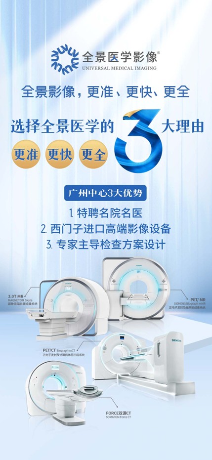 廣州全景醫學影像診斷中心是一家專注於醫學影像領域的專業機構,致力於為患者提供精準的診斷支持。中心的掃瞄設備均來自國際知名廠家Siemens,Philips,GE,能夠提供PET/MRI、MRI、CT和超音波等,能夠進行全面的影像檢查和評估。